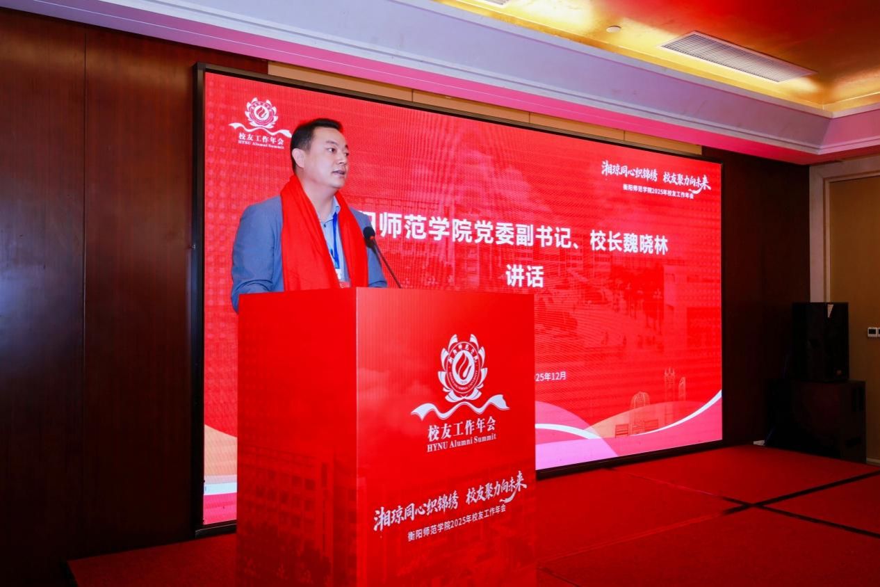 衡阳师范学院党委副书记、校长魏晓林代表学校向广大校友致以亲切问候,并对海南校友会的周密筹备表示衷心感谢。他回顾了学校办学传统与近年来取得的发展成绩,指出校友始终是学校可信赖的力量、亮丽的名片。他强调,校友工作是人才培养工作的重要组成部分,学校将以“校友与母校发展共同体”为定位,系统构建覆盖校友全生命周期的服务体系,推动校友工作向前延伸——自学生收到录取通知书起,即启动校友关怀与联络机制,贯穿学业、职业与事业发展全程。他表示,学校将立足服务湖南“三高四新”美好蓝图建设,以本次年会为起点,持续完善校友联络机制,强化服务赋能,深化校友与母校在情感共鸣、事业共进、资源共享等方面的融合互动,携手广大校友共同谱写学校高质量发展新篇章。